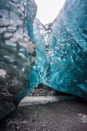Las increíbles paredes de esta cueva glaciar parecen escamas de un helado dragón azul.